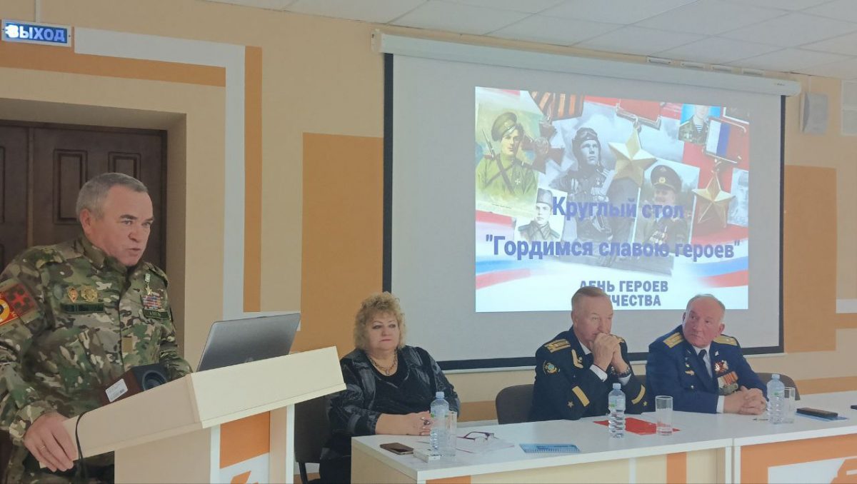 В преддверии Дня Героев Отечества со студентами ФГБОУ ВО «Астраханский государственный технический университет» провели круглый стол на тему «Гордимся славою героев». Модератором выступила Светлана Батаева, главный специалист координационного центра АГУ им. В.Н. Татищева. В качестве спикеров на мероприятие были приглашены Федор Винник капитан 1-ранга запаса, ветеран Вооруженных Сил РФ, председатель РОО «Астраханское морское собрание», Евгений Туркин, полковник запаса, Заслуженный военный лётчик, экс заместитель начальника 185 Центра боевого применения авиации на аэродроме Приволжский; Василий Григорьев, подполковник милиции в отставке, ветеран боевых действий на Северном Кавказе, участник СВО. Открыл круглый стол Федор Винник. В своем выступлении он обозначил, что в год Защитника Отечества особое внимание уделяется участникам СВО, акцентировав внимание студентов на памятной дате 9 декабря — Дне героев Отечества. Также он напутствовал молодежь изучать историю России, бережно сохранять семейные архивы о подвигах предков в годы Великой Отечественной войны для последующих поколений. Светлана Батаева продемонстрировала студентам видеоролик об истории возникновения этой даты и презентацию об астраханцах — Героях Советского Союза и Героях Российской Федерации на примерах их героических подвигах, совершенных как в годы Великой Отечественной войны, так и в ходе «боевых действиях в горячих точках», локальных войнах в разные периоды, в том числе и об астраханцах, участниках специальной военной операции на Украине. Всех погибших при исполнении воинского долга почтили минутой молчания.